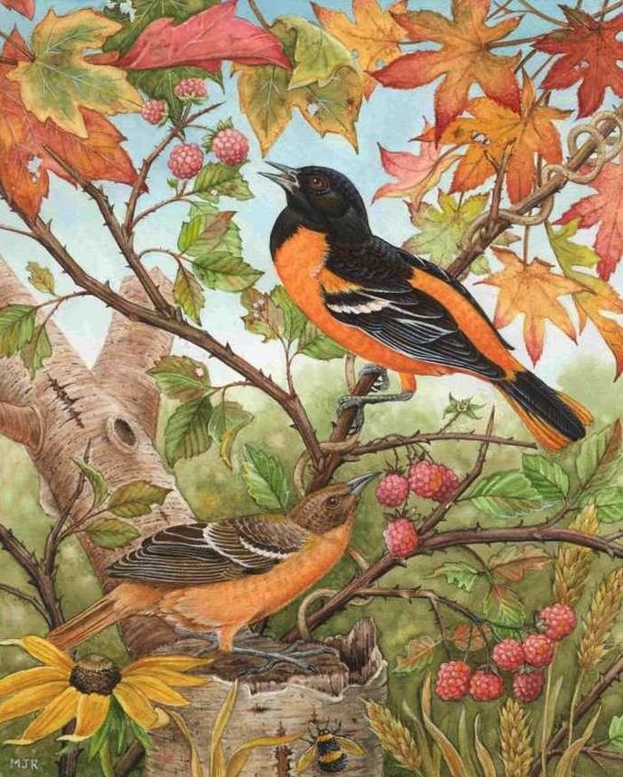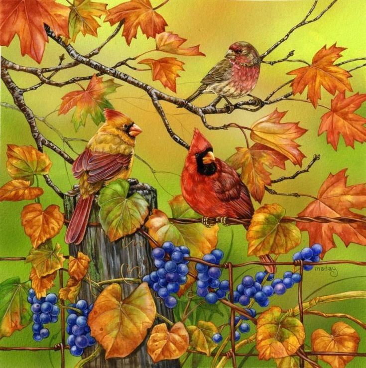 Осенняя птица рисунок — это красивое и нежное изображение птицы, которая символизирует приход осени. Рисунок передает атмосферу умиротворения и тепла этого времени года, а также воплощает в себе красоту природы и ее изменения. Осенняя птица на рисунке может быть изображена на фоне ярко-красного листопада, с растущими грибами или собирающей последние оставшиеся ягоды. Весь образ наполнен теплыми и пастельными оттенками, что создает ощущение уюта и спокойствия. Рисунок осенней птицы может использоваться для украшения интерьера, как элемент декора или просто для того, чтобы наслаждаться его красотой и эмоциональной составляющей.