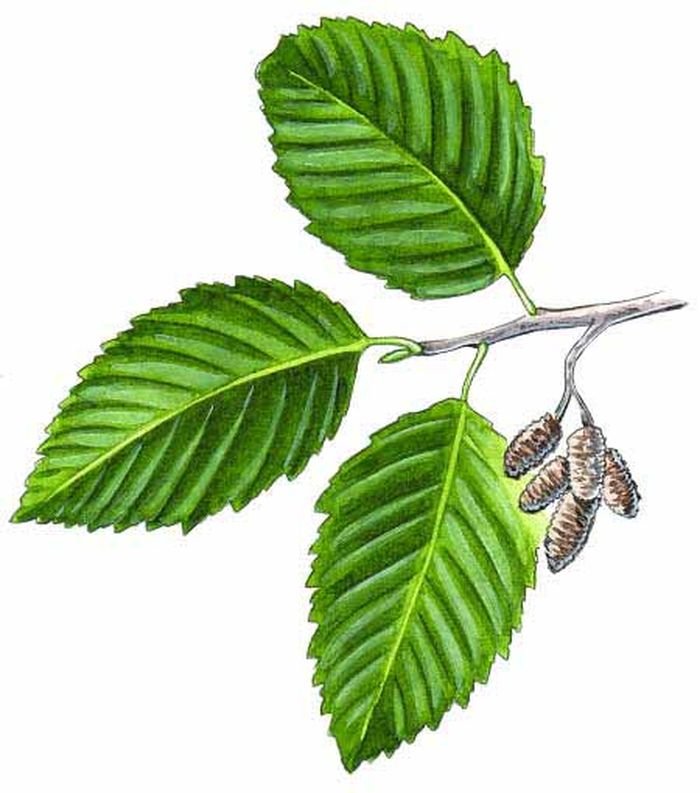 ![Ветка ольхи с листьями]()