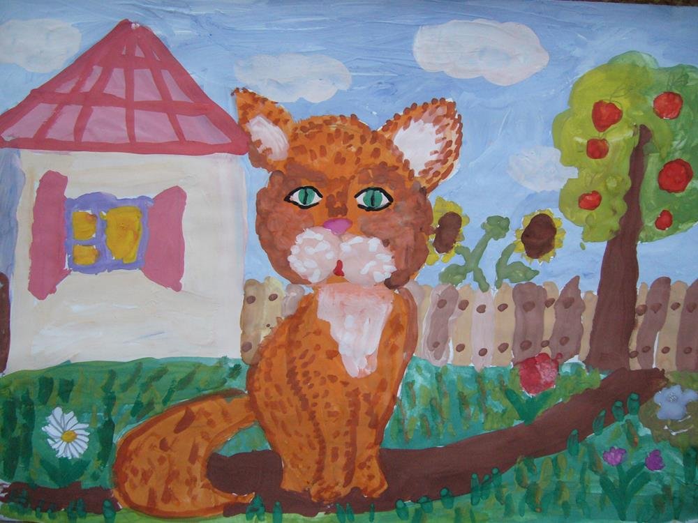 ![Детские рисунки котов]()