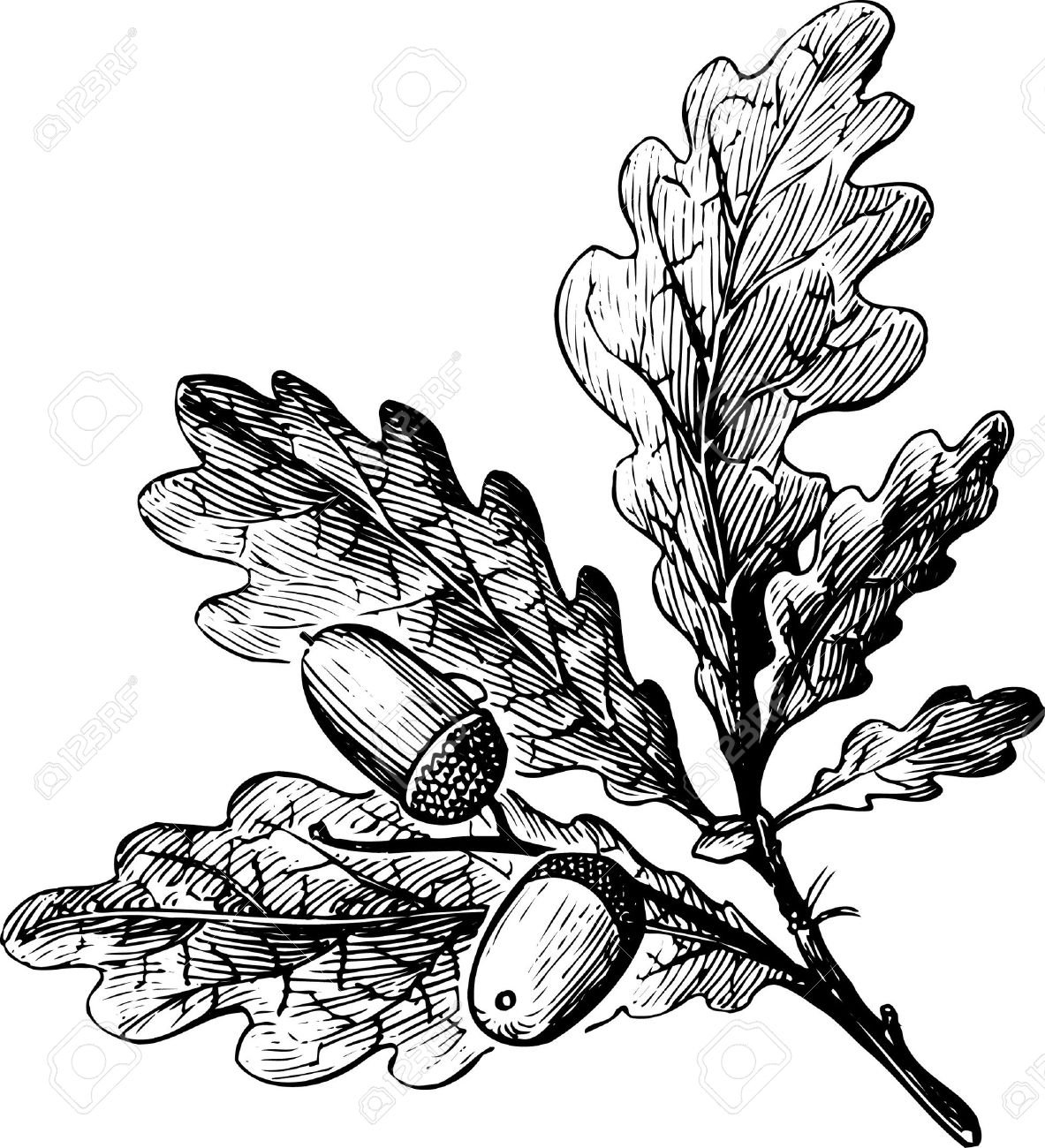 ![Дуб черешчатый Ботаническая иллюстрация]()