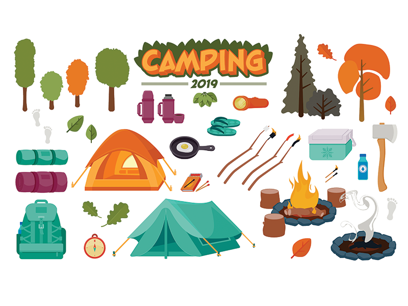 Кемпинг векторный набор
