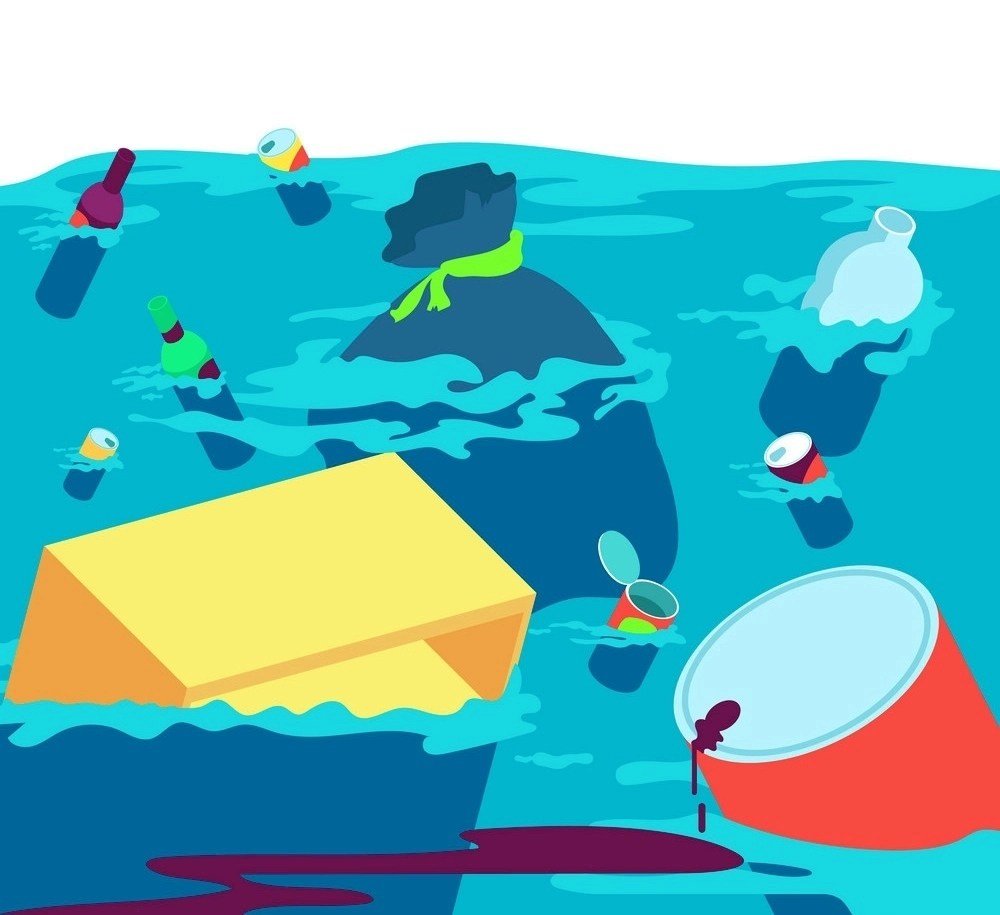 ![Мультяшный мусор в воде]()