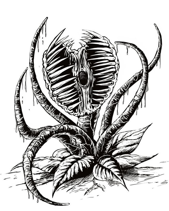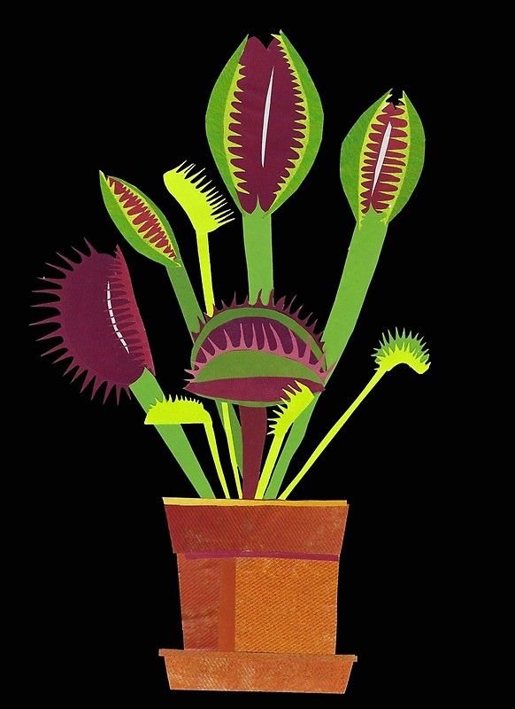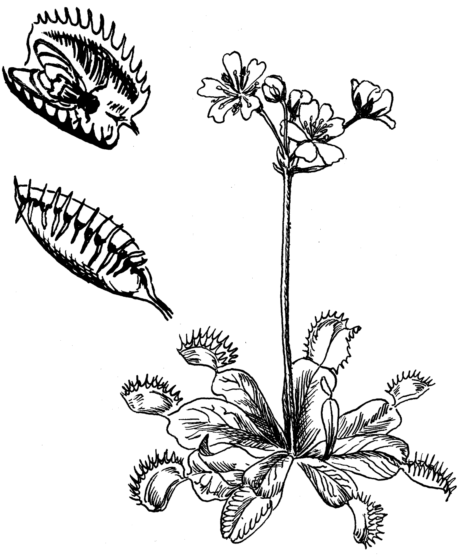 ![Ботанический рисунок Венерина мухоловка Дионея]()