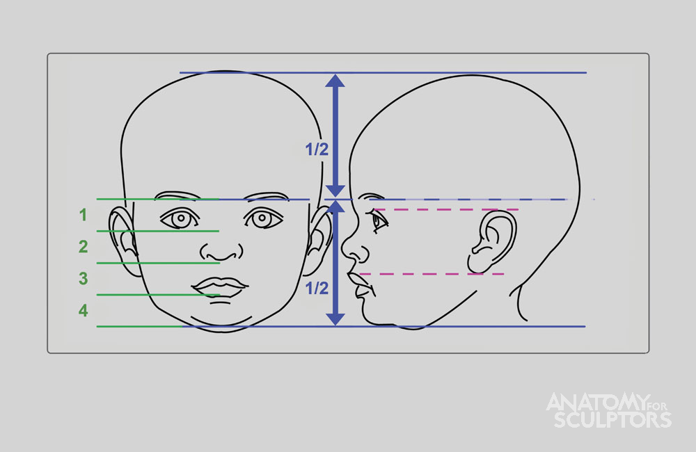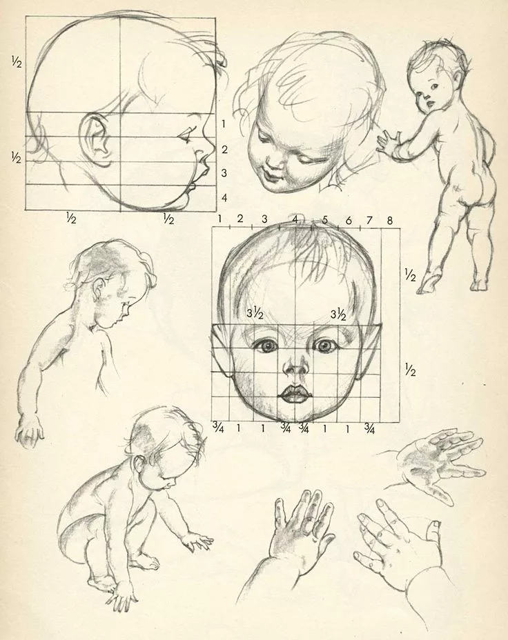 Пропорции лица ребенка для рисования для начинающих