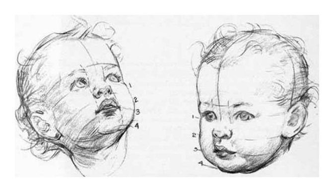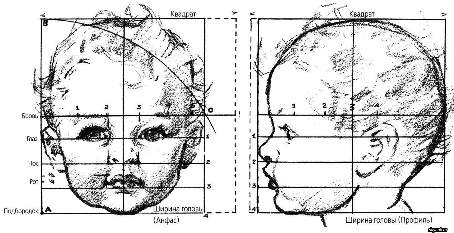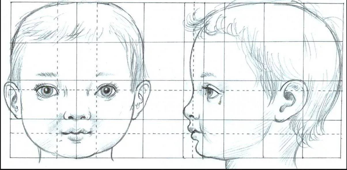 Пропорции лица ребенка при рисовании портрета схема