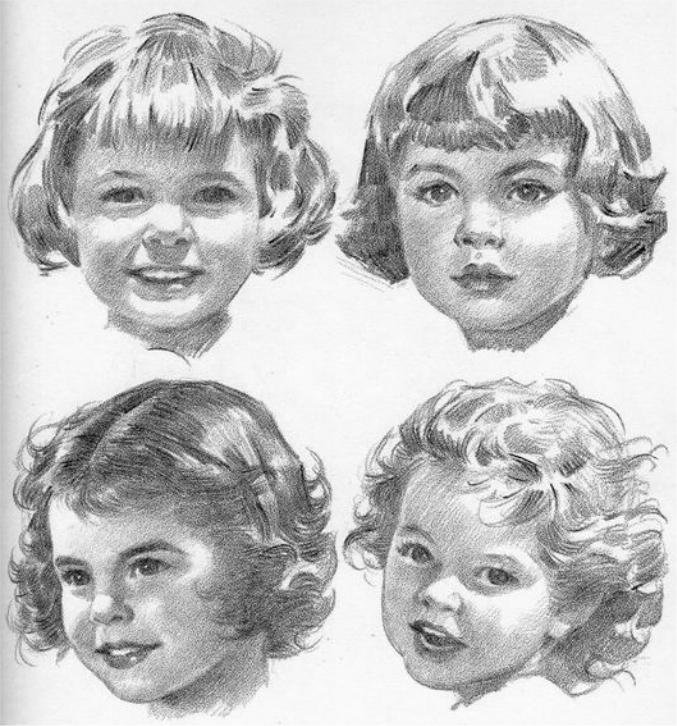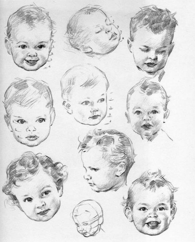 ![Наброски детской головы]()