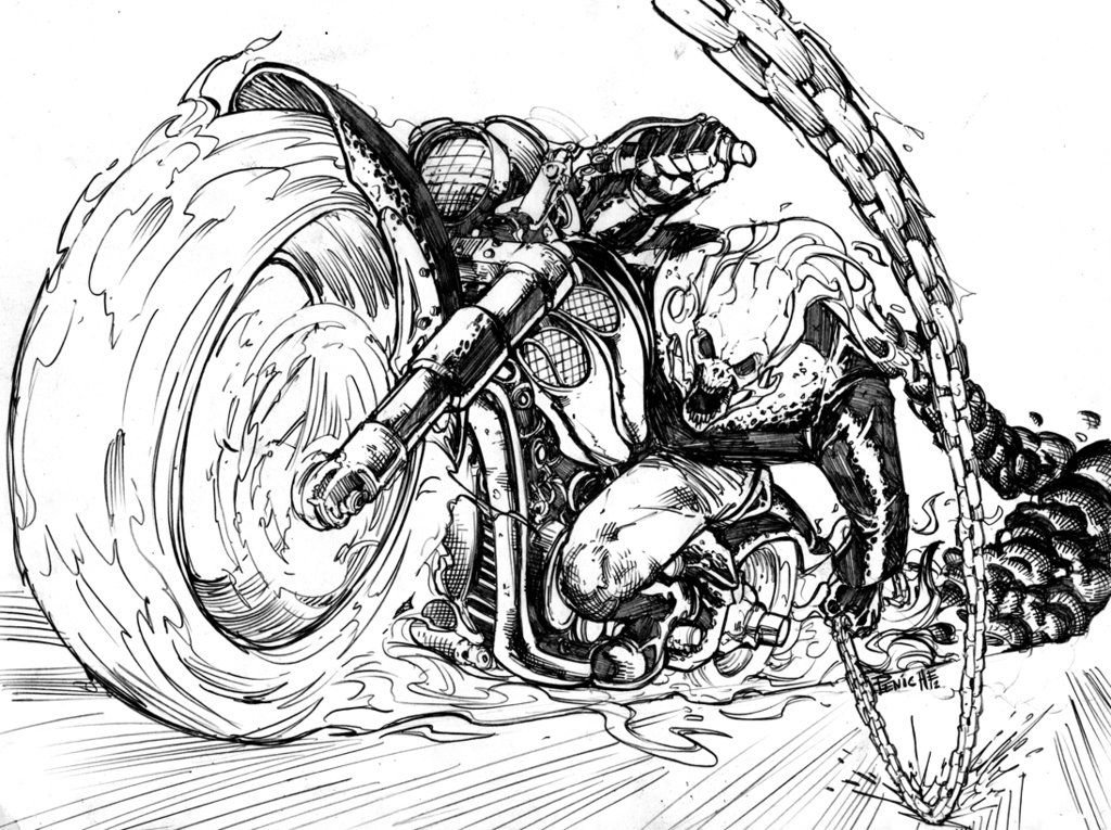 ![Призрачный гонщик рисунки карандашом Робби Рейес]()
