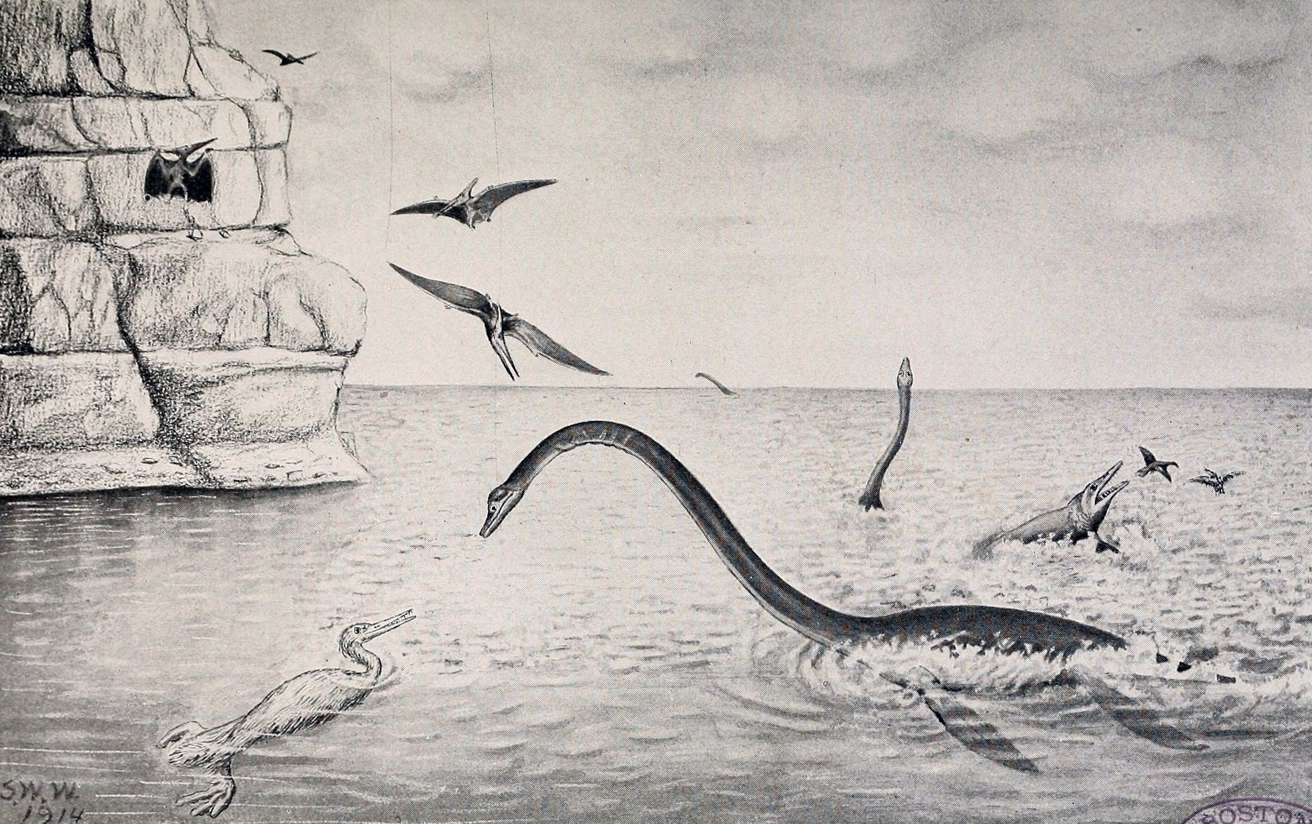 ![Мозазавр Эласмозавр силуэт]()