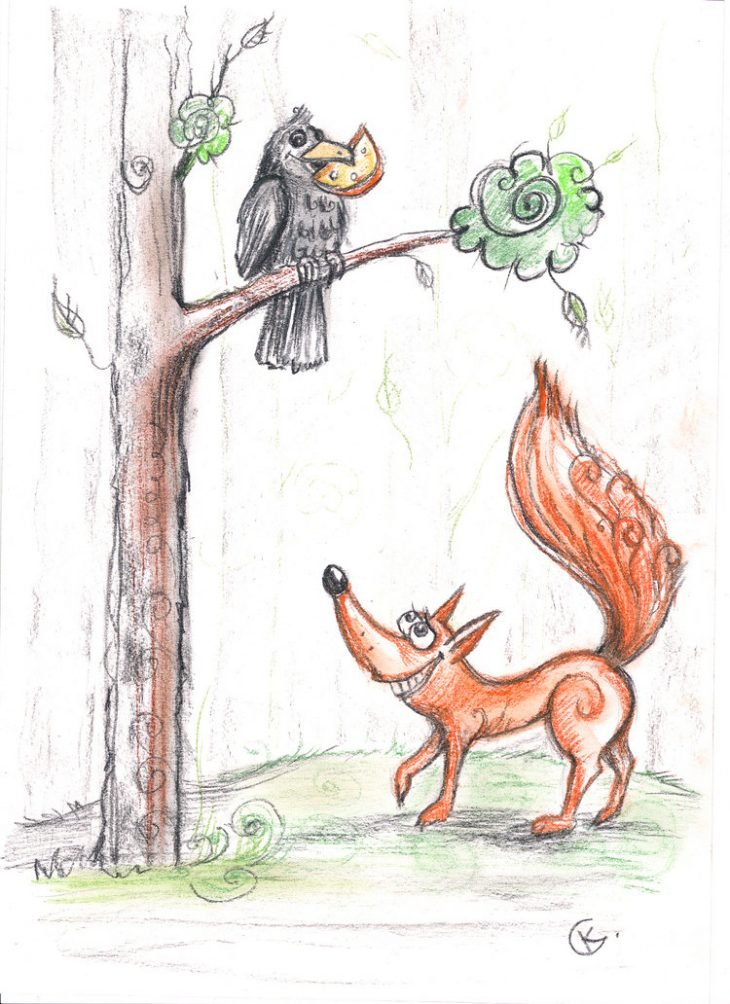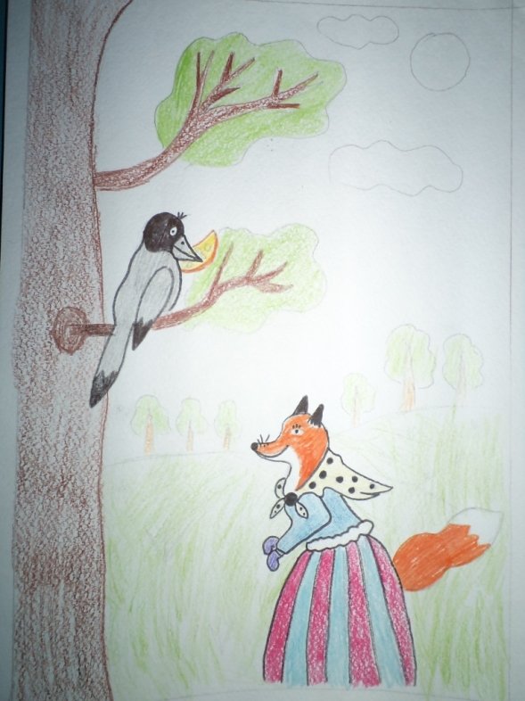 Рисунок к басне Крылова ворона и лисица 3 класс легко