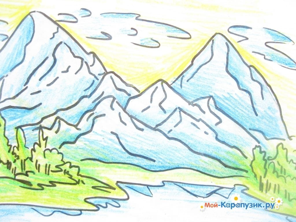 Горы рисунок для детей