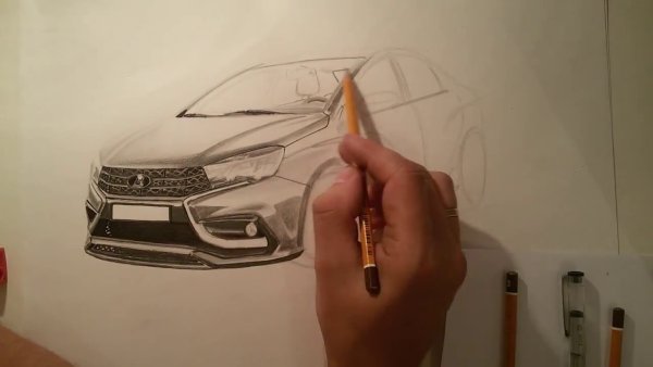 ![Лада Веста рисунок карандашом]()