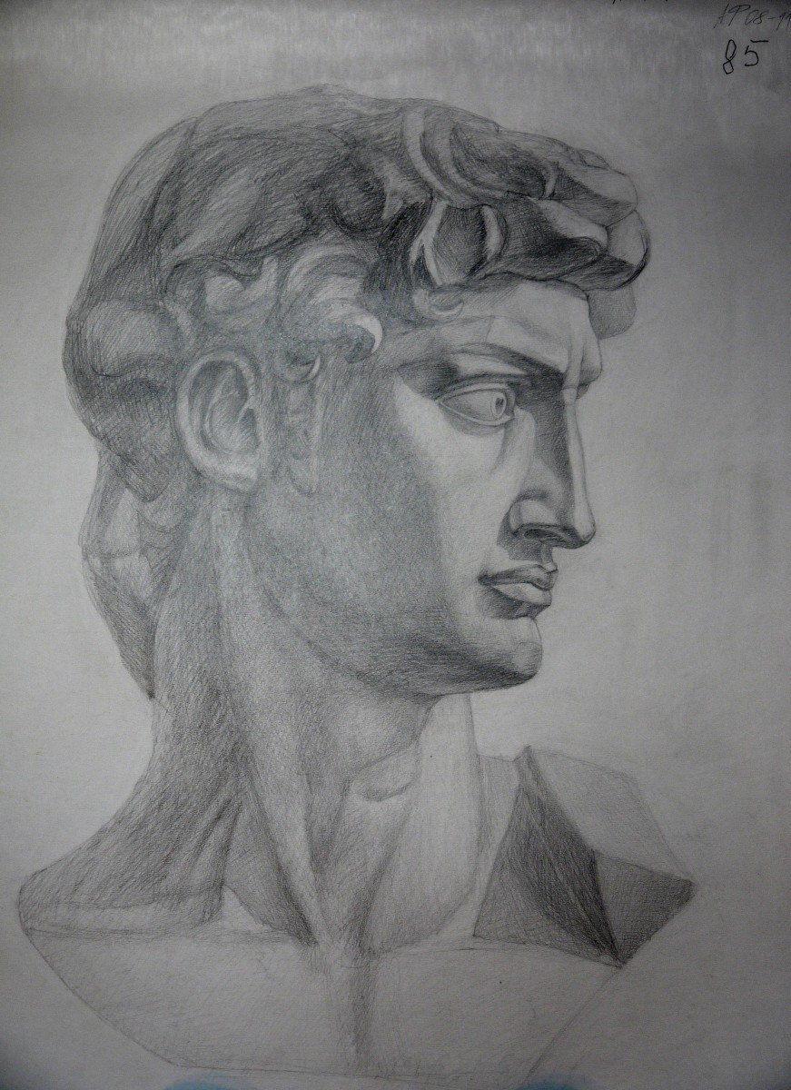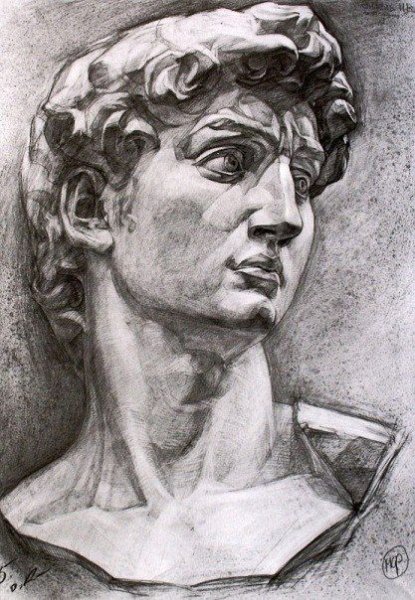 ![Гипсовая голова Давида рисунок]()