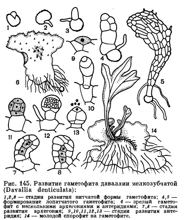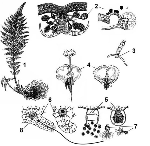 ![Архегонии и антеридии у папоротника]()