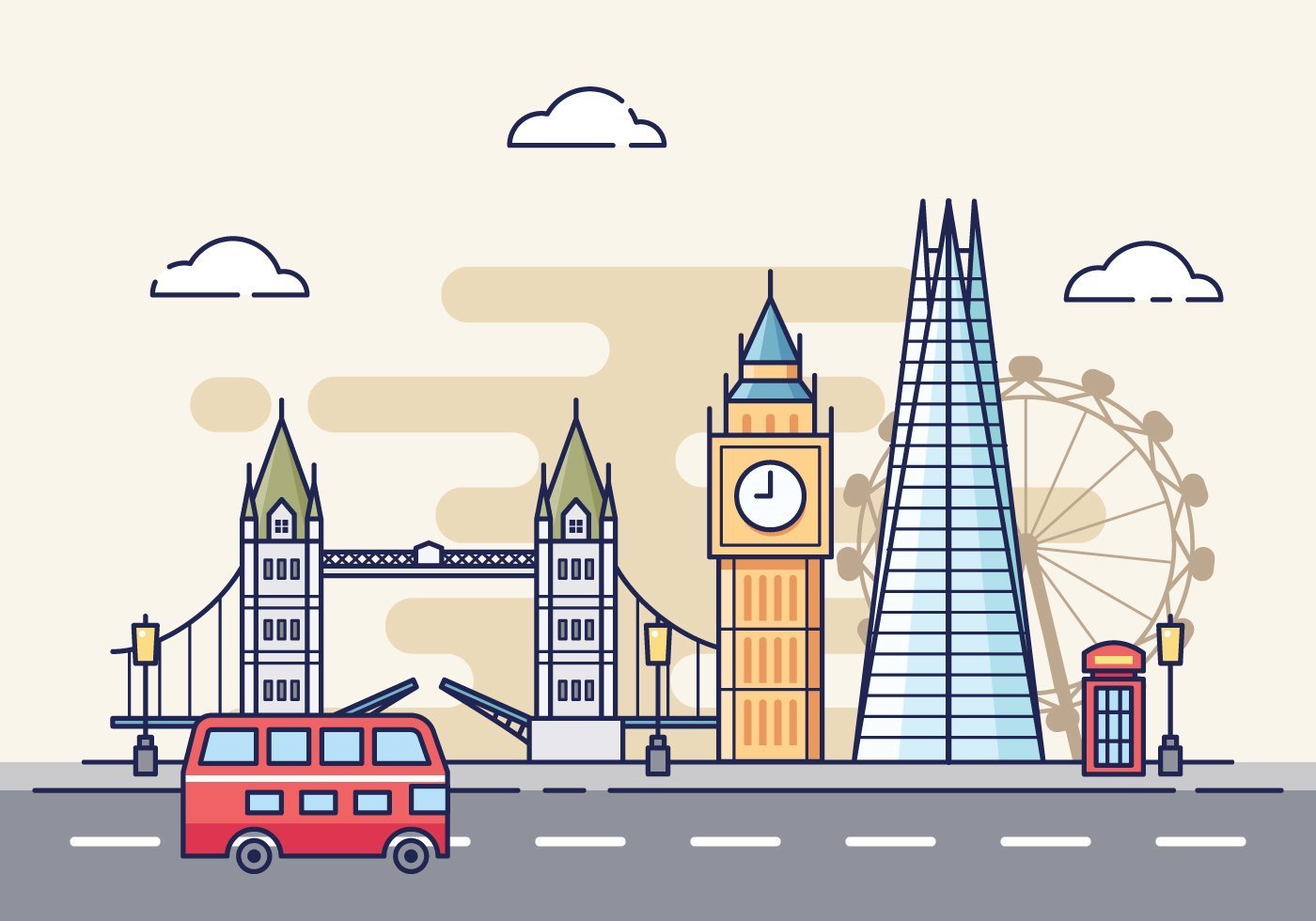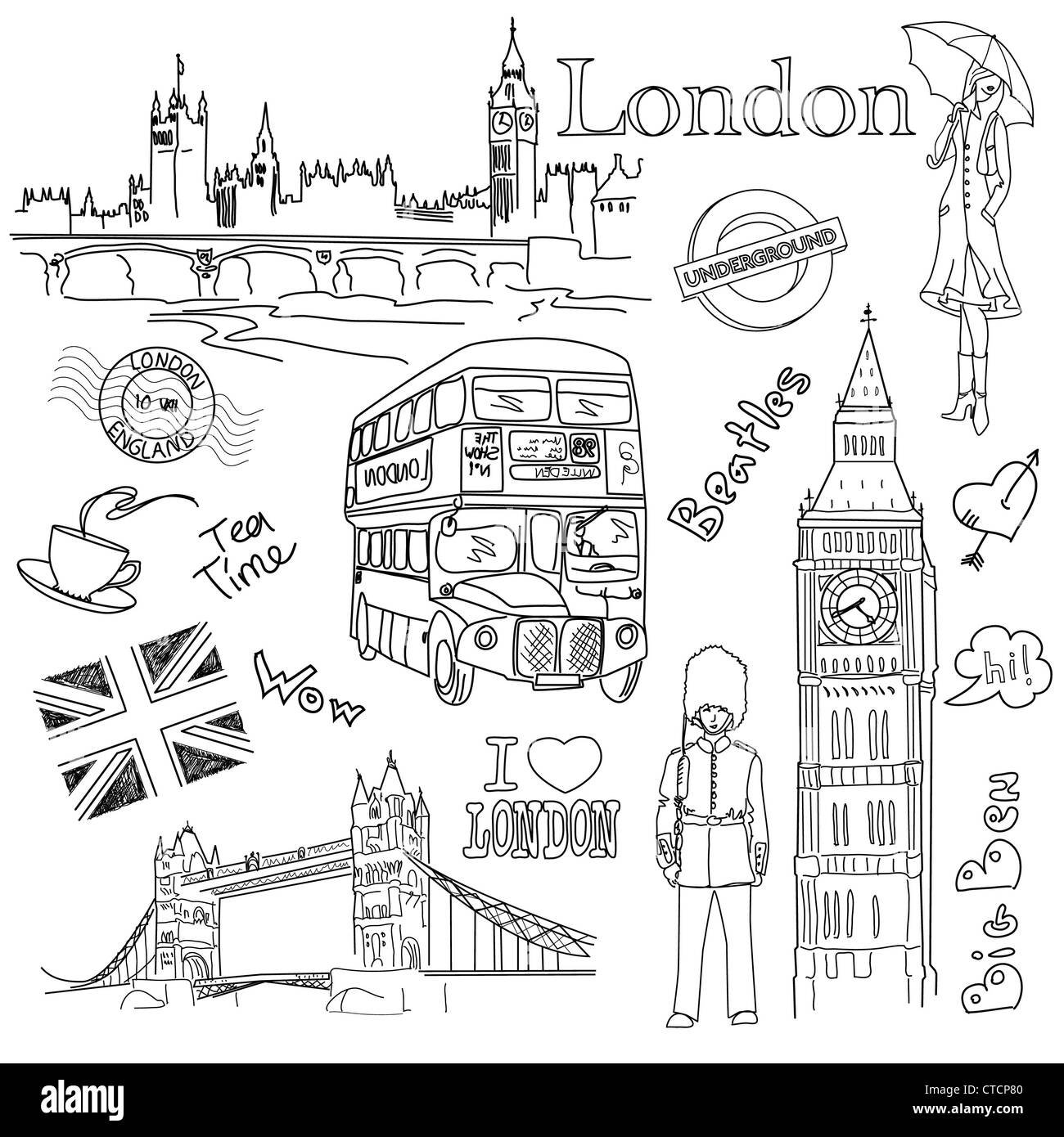 Достопримечательности Лондона на белом фоне