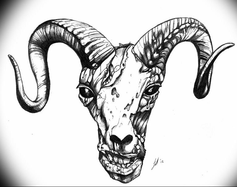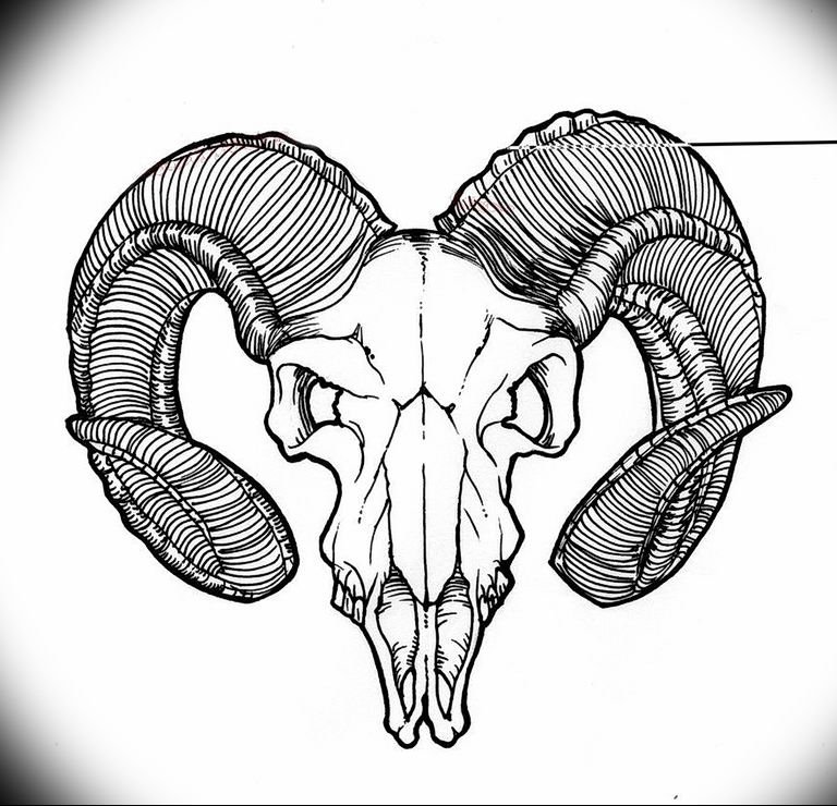 ![Череп барана тату эскиз]()