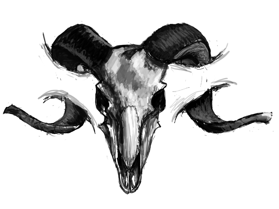 ![Череп барана эскиз]()