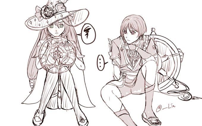 Мона и Скарамучча Геншин