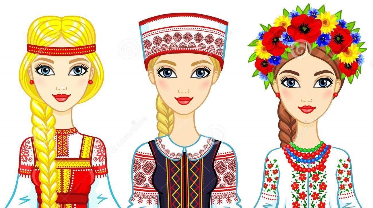 ![Девочки в национальных костюмах иллюстрации]()