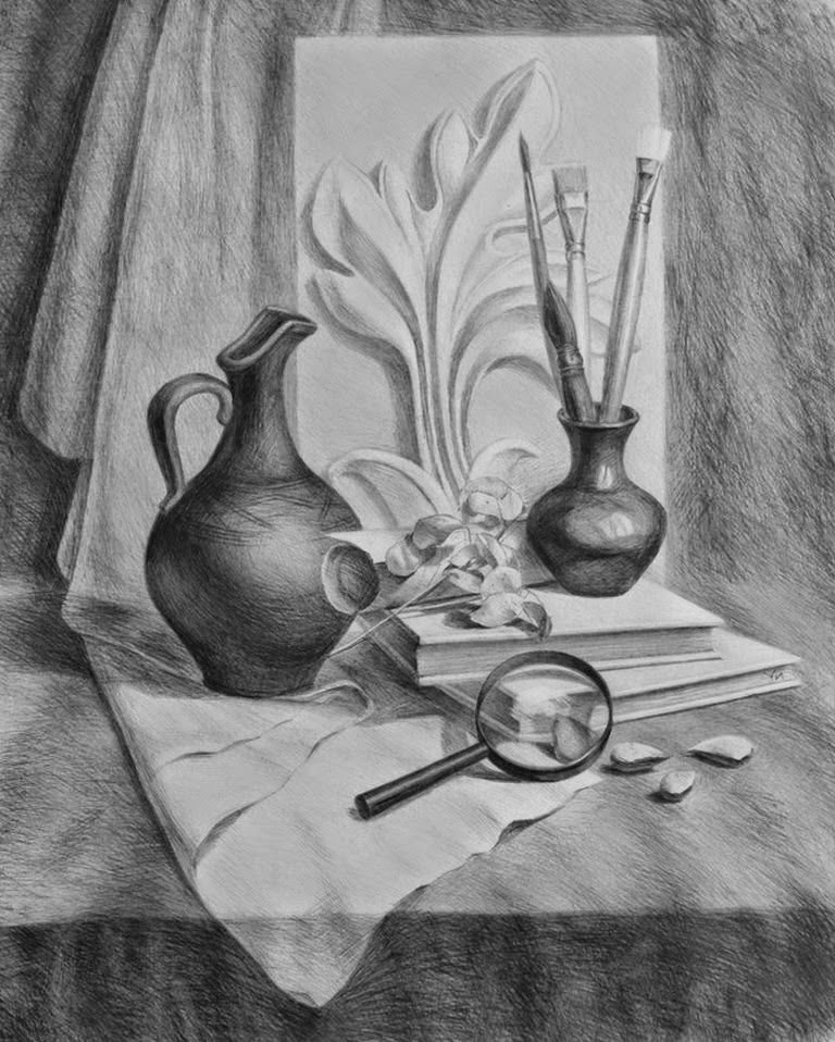 ![Натюрморт рисунок карандашом]()