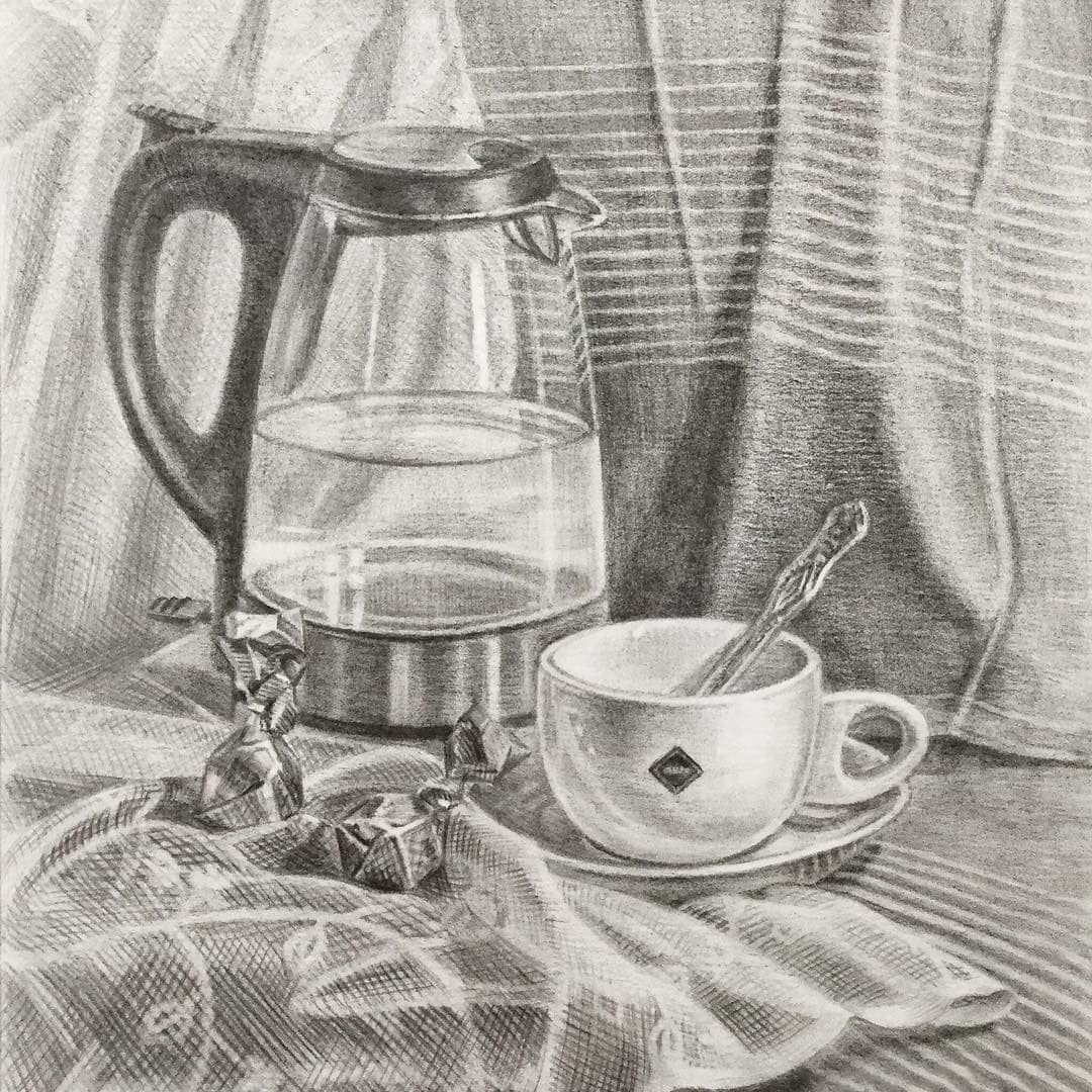 Бытовой натюрморт карандашом