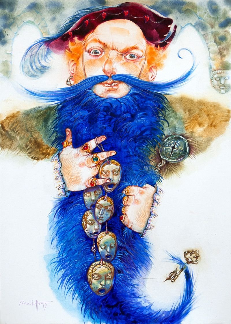 Синяя борода - это захватывающий и оригинальный рисунок, который привлекает внимание своей необычной цветовой гаммой. Картина изображает мужчину с густой синей бородой, создавая впечатление загадочности и интриги. Яркий контраст между синим оттенком бороды и кожей лица придают рисунку особую выразительность. Каждая деталь тщательно проработана, отражая мастерство художника и его способность передать эмоции через изображение. Этот уникальный рисунок станет прекрасным украшением любого интерьера и вызовет интерес у всех, кто увидит его.