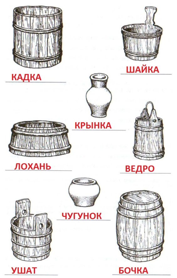![Бочка ведро кадка Крынка лохань ушат чугунок шайка]()