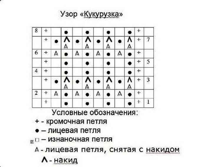 Вязание кукурузка спицами с описанием и схемами