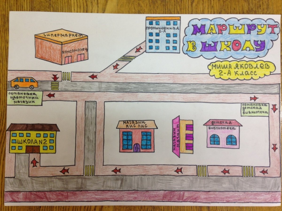 ![Безопасный маршрут в школу рисунки]()
