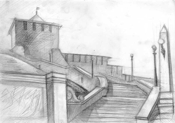 ![Чкаловская лестница Нижний Новгород зарисовки]()