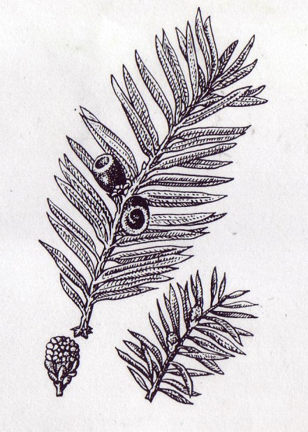 ![Тис ягодный Ботанический рисунок]()