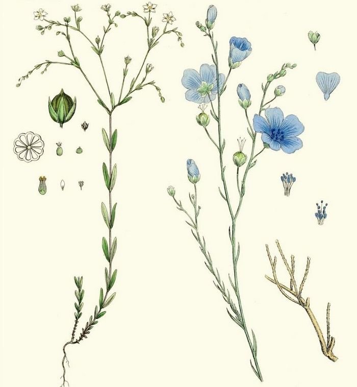 ![Лен Ботаническая иллюстрация]()