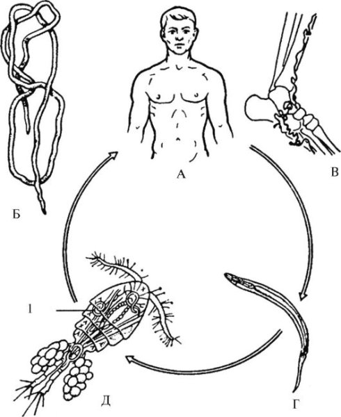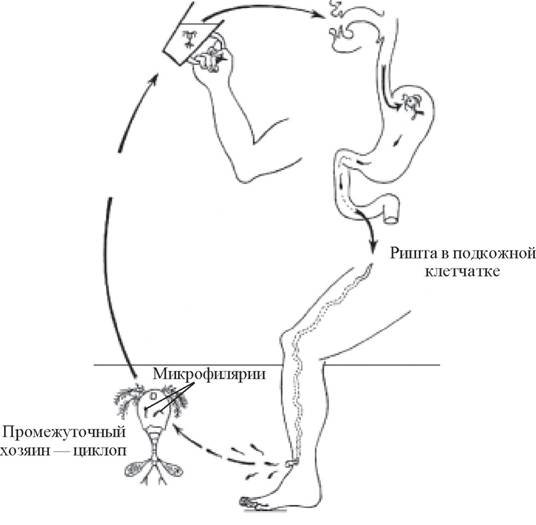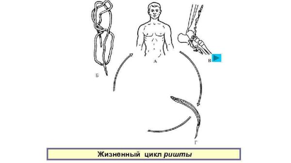 ![Жизненный цикл ришты (dracunculus Medinensis)]()