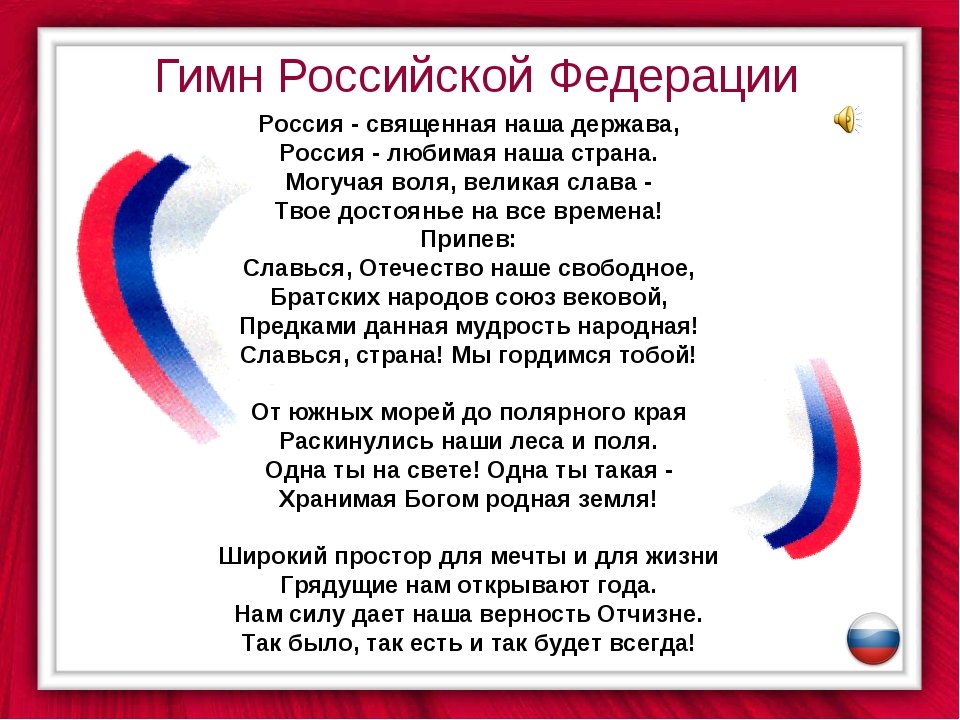 ![Слова государственного гимна Российской Федерации]()