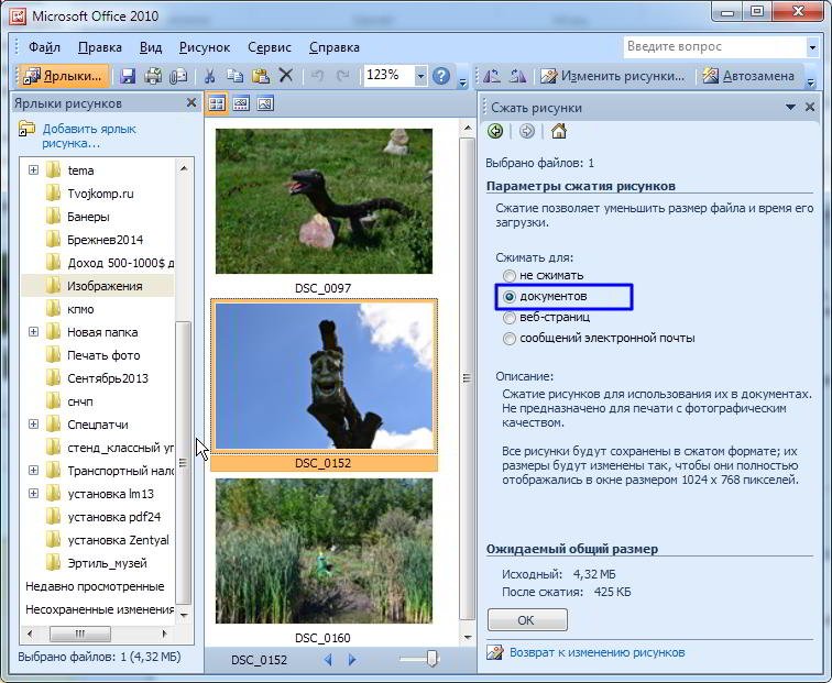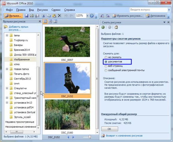 Microsoft Office сжатие фото