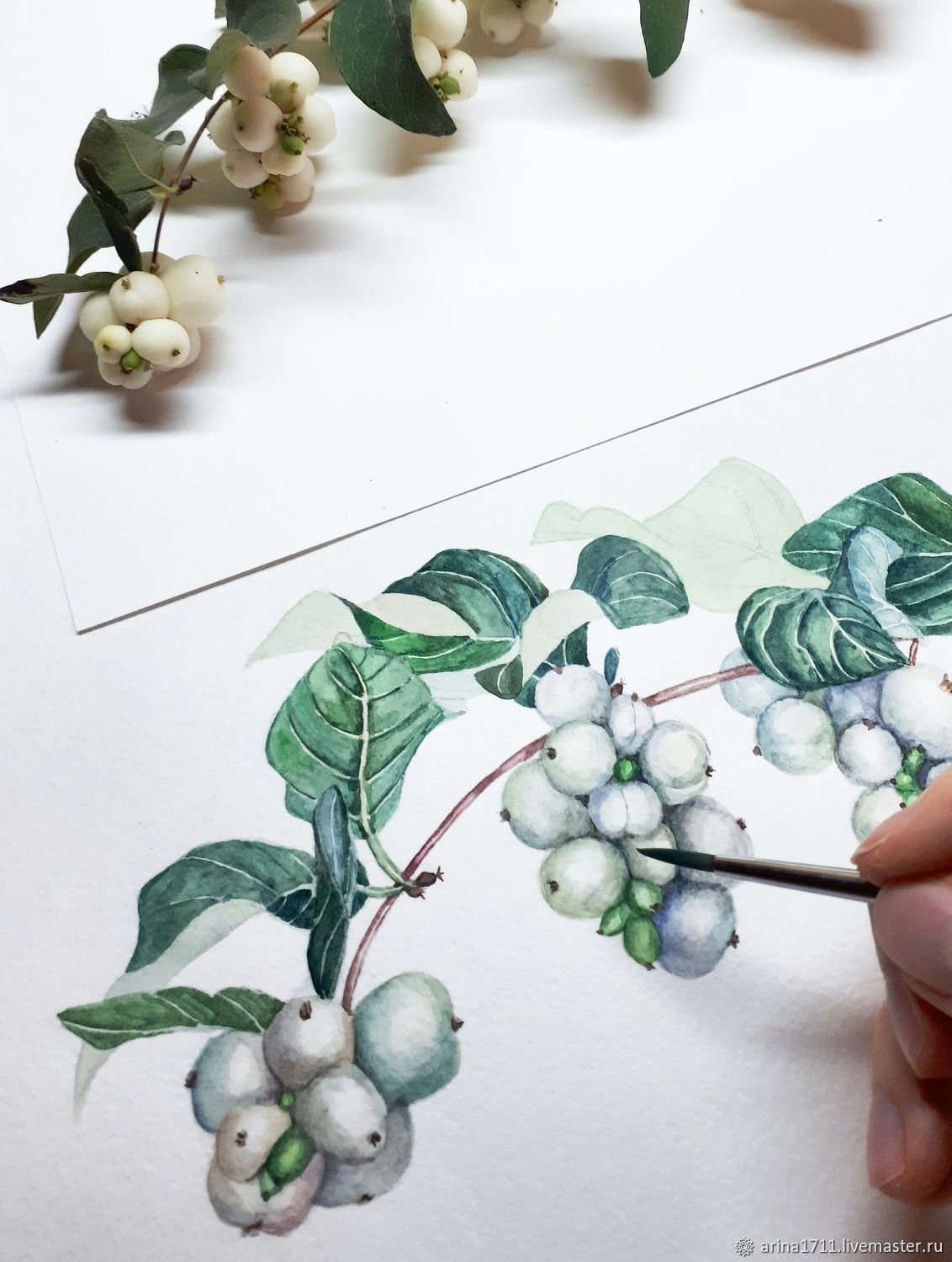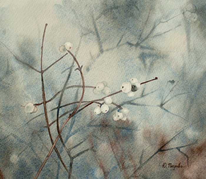 Снежноягодник акварель
