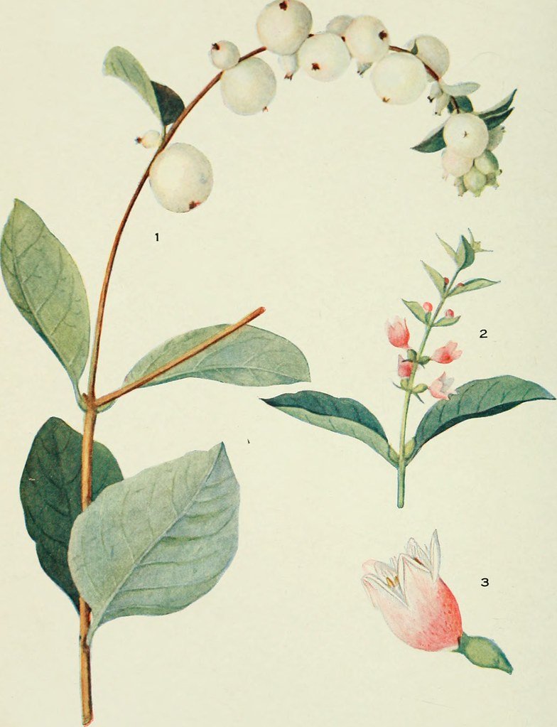 ![Снежноягодник белый Ботаническая иллюстрация]()