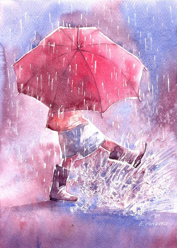 ![Акварель двое под дождем]()