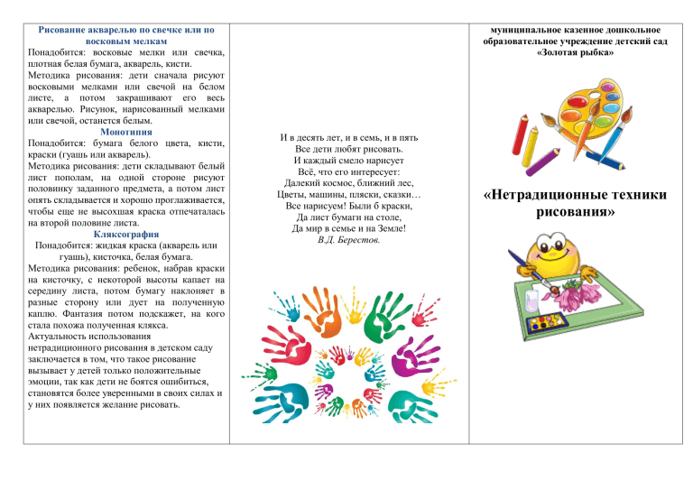 ![Буклет нетрадиционные техники рисования в детском саду для родителей]()