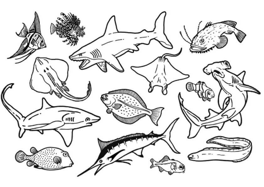 ![Морские рыбы раскраска]()