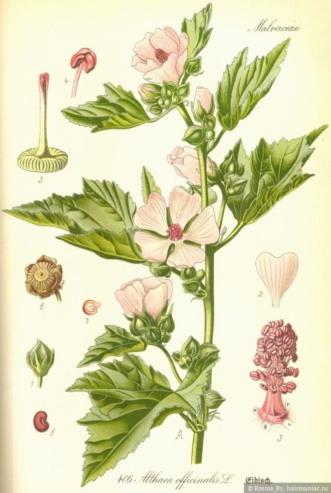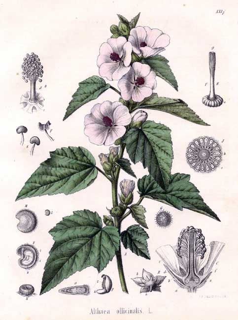 ![Althaea officinalis Ботаническая иллюстрация]()