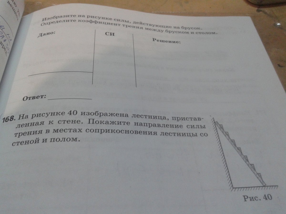 Направление силы трения у лестницы приставленной к стене