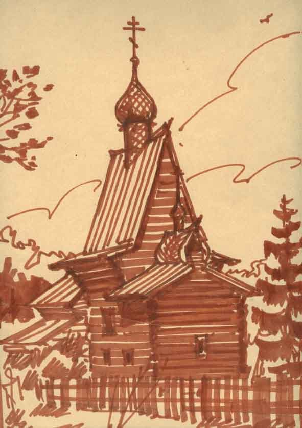 ![Преображенская Церковь погоста Кижи карельская зарисовка]()
