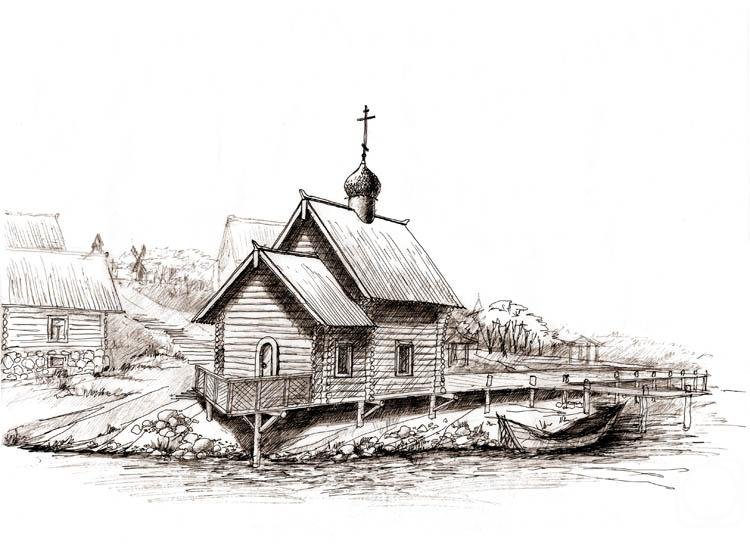![Музей деревянного зодчества в Суздале рисунок карандашом]()