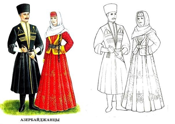 ![Национальная одежда Азербайджана рисунки]()