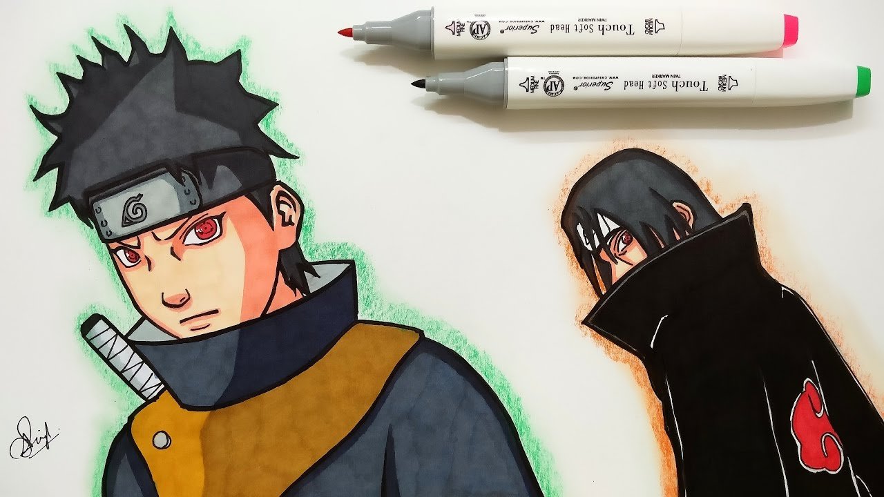 Наруто Итачи и Шисуи карандашом