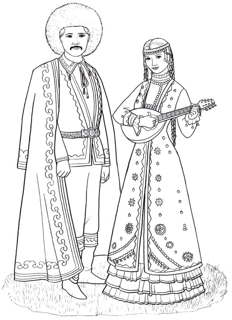 Народные костюмы Башкиров раскраски