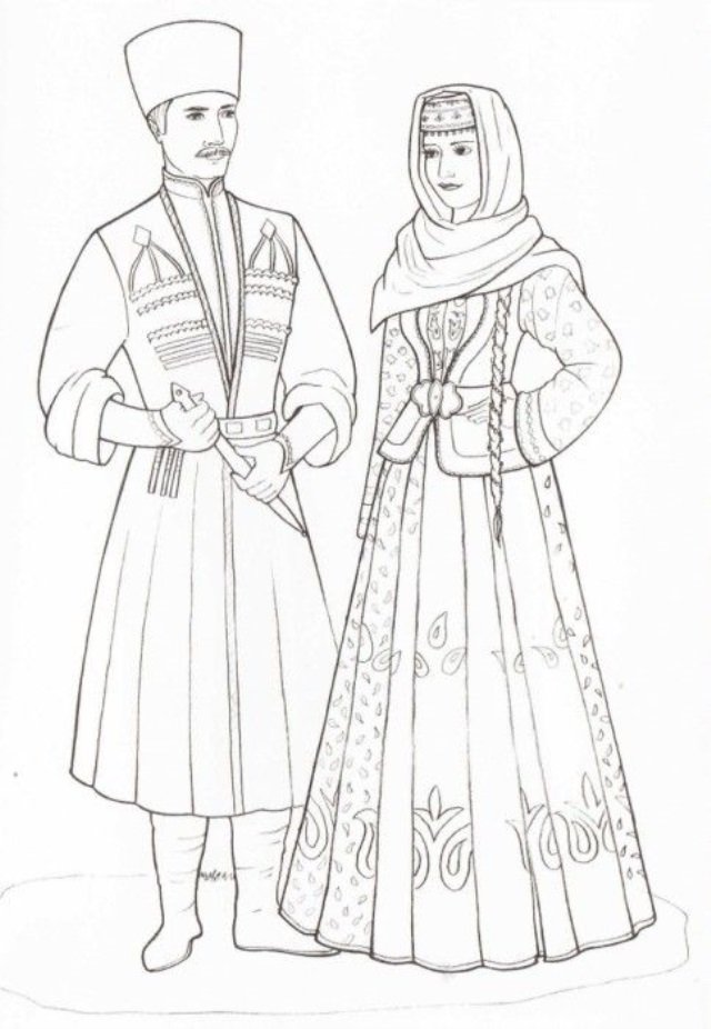 ![Национальный костюм адыгейцев раскраска]()