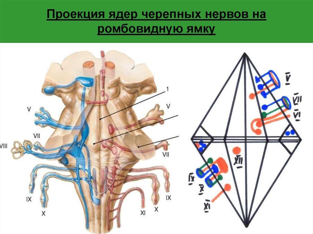 Проекция ядер черепных нервов на ромбовидную ямку схема
