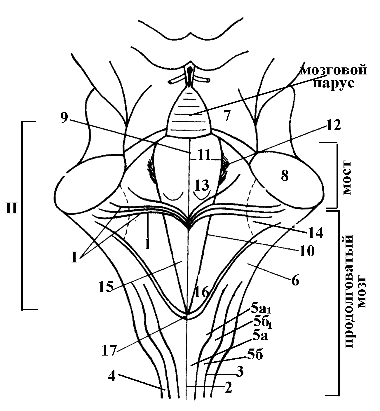 Внешнее строение продолговатого мозга дорсальная поверхность