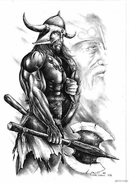 ![Эскизы тату викингов и воинов]()